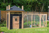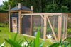 Een ruime kippenren van meer dan 4 m², volledig afgesloten met stevig gaas en een frame van Douglas hout. Via een vrije doorgang kunnen uw kippen eenvoudig vanuit het nachthok de ren in scharrelen. De brede toegangsdeur aan de voorzijde biedt u zelf gemakkelijke toegang.