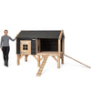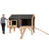 Het hok is opgebouwd uit een verhoogd Douglas houten frame, perfect geschikt voor buitengebruik zonder extra onderhoud. De zwarte potdeksel-afwerking geeft het nachthok een elegante en moderne uitstraling. Jouw konijnen kunnen het nachthok eenvoudig bereiken via een handige loopbrug.