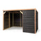 De stal is gebouwd op een behandeld grenenhouten frame, ontworpen voor langdurig buitengebruik. De buitenzijde is bekleed met zwart potdeksel en verfraaid met Douglas houten details, wat zorgt voor een stijlvolle en duurzame afwerking.